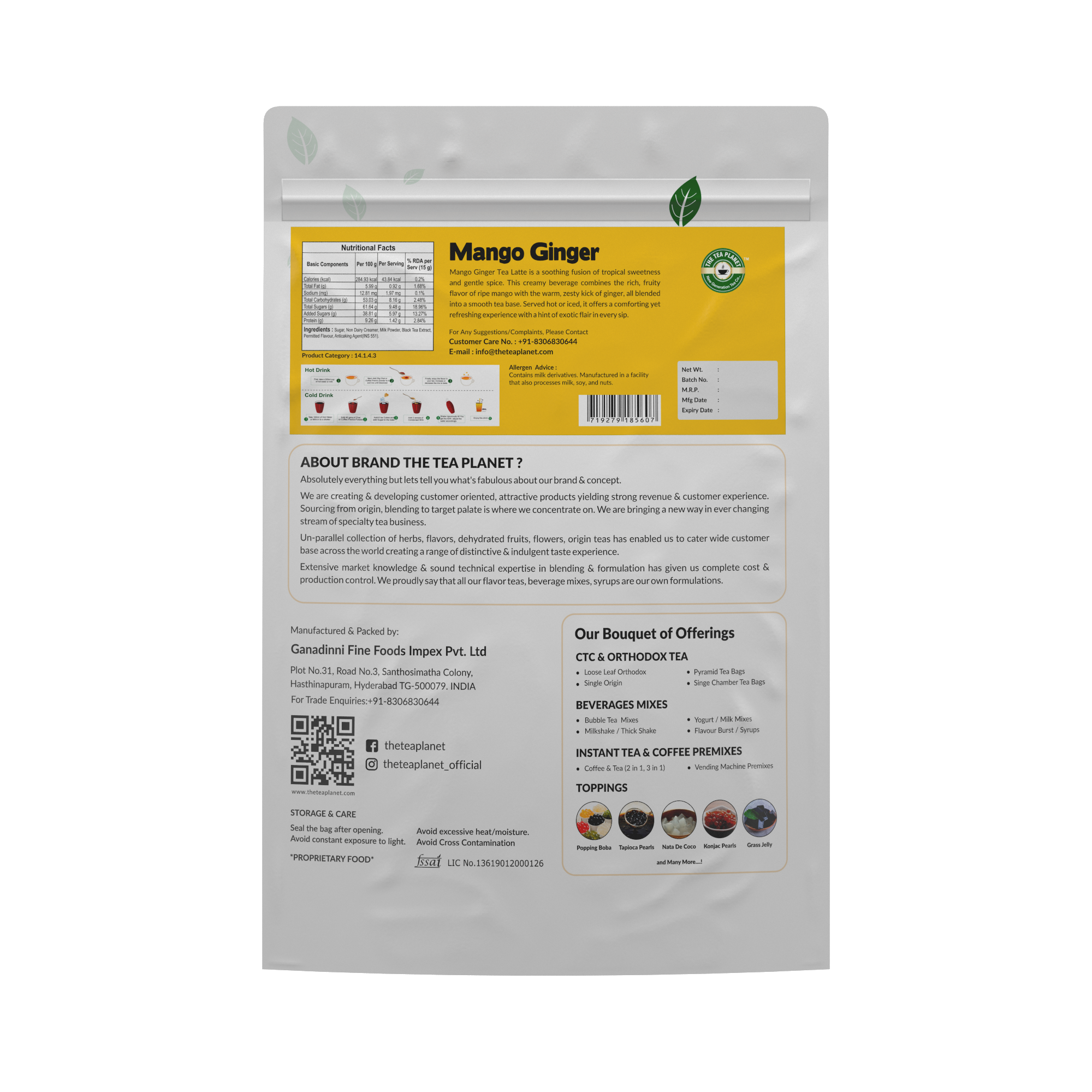 The Tea Planet Mango Ginger Tea Latte is a delightful fusion of tropical mango and zesty ginger in a comforting tea latte. This unique blend offers a mix of sweet and spicy flavors, creating a refreshing and invigorating beverage. With every sip, you'll experience the juicy sweetness of mango complemented by the warming kick of ginger, resulting in a harmonious combination that tantalizes the taste buds. The Mango Ginger Tea Latte is the perfect choice for those seeking a refreshing and flavorful drink that provides a balance of tropical fruitiness and invigorating spice.
