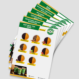 Uniforms, cups, menu boards, danglers, and POS materials for a professional Tea Planet look.